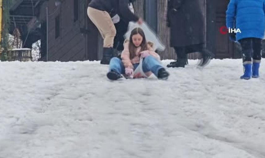 Bölgedeki çocuklar karın tadını poşetle kayarak çıkardı. Çocuğuyla birlikte karda vakit geçiren Umut Atay, kar yağışının ardından eğlenmeye geldiklerini belirterek, "Geldik eğlendik. Şimdi de eve dönüyoruz" dedi.