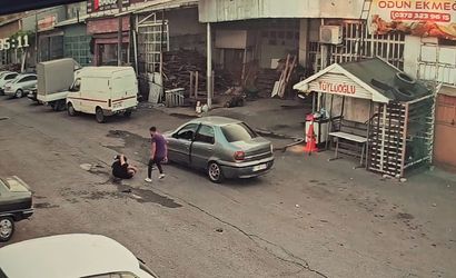 Zonguldak'ın Karadeniz Ereğli ilçesinde, bir otomobilin çarptığı kişinin darbedilmesi olayı, güvenlik kamerası görüntüleriyle kaydedildi.