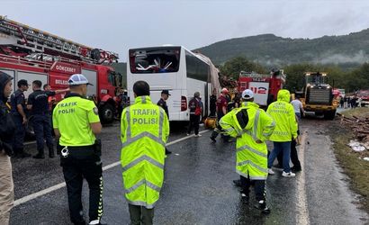 Zonguldak'ın Gökçebey ilçesinde yolcu otobüsüyle kamyonun çarpışması sonucu 2 kişi yaşamını yitirdi, 23 kişi yaralandı. Zonguldak Valisi Osman Hacıbektaşoğlu, kaza yerinde gazetecilere açıklamalarda bulundu.