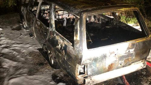 Zonguldak'ın Kozlu ilçesinde park halindeki bir otomobil, yangın sonucu kullanılmaz hale geldi.