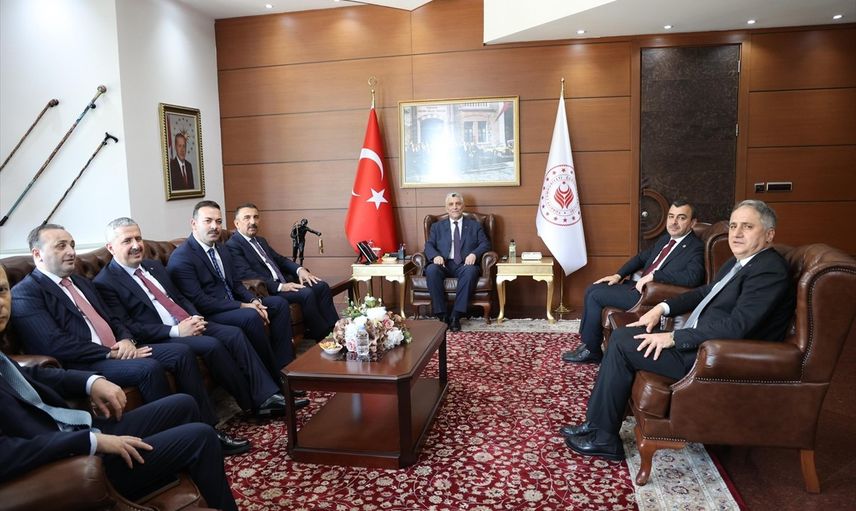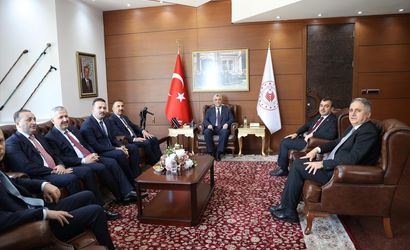 Ticaret Bakanı Ömer Bolat (solda), programları kapsamında Zonguldak Ticaret ve Sanayi Odası Başkanı Hikmet Yılmaz'ı (sağda) ziyaret etti.