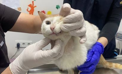 Zonguldak'ta başından yaralanan ve beslenmekte zorlanan kedi tedavi edildi. Kent merkezinde sokakta başında açık yarası bulunan kediyi fark edenler, hayvanı veteriner hekim Ömer Faruk Alkan'a götürdü. Yaraya müdahale eden Alkan, kedinin ağzının bir tarafıyla beslenebildiğini belirleyince metal diş kaplaması tedavisi uyguladı.