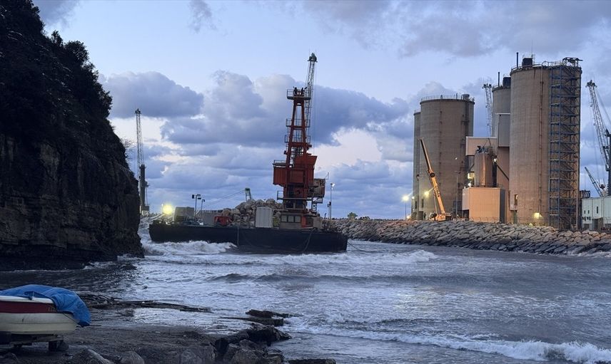 Çatalağzı beldesinde bulunan bir firmaya ait olan yüzer vinç, şiddetli hava muhalefeti nedeniyle bağlı olduğu rıhtımdan kurtularak sürüklenmeye başladı. Zonguldak Liman Başkanlığı ekipleri, açığa sürüklenen vinci römorkörler yardımıyla geri çekmeye çalışırken, halatların kopması sonucunda vinç dereye sürüklendi.